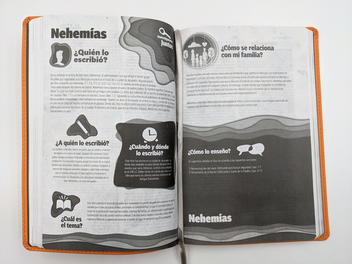 Este ejemplar sagrado incluye 48 guías de lectura interactiva para fomentar la conversación en familia a lo largo de los doce meses del año, así como introducciones a cada uno de los libros bíblicos que establecen conexiones entre sus relatos y las realidades actuales de las familias.