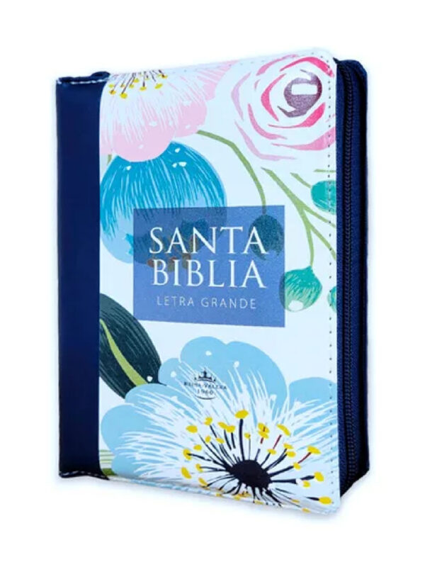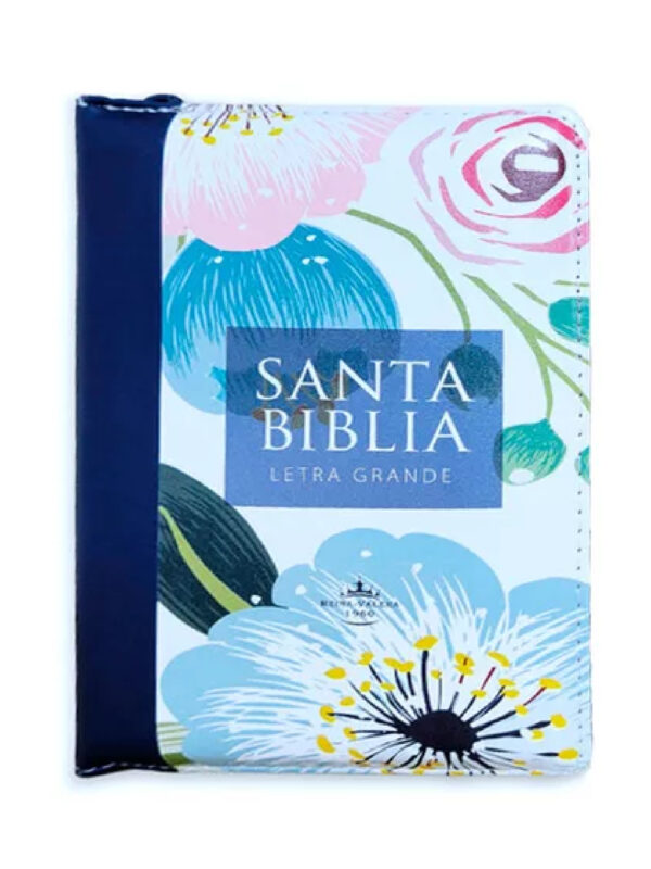 Biblia RVR 1960 Letra Grande Compacta 11 puntos Azul Flores Símil Piel con Índice con Cierre