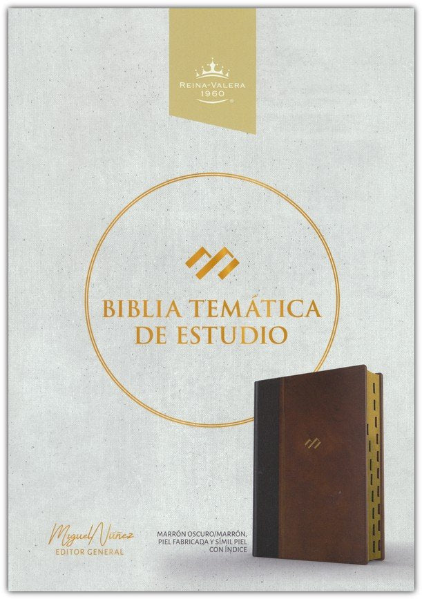 Biblia RVR 1960 de Estudio Temática Miguel Nuñez Piel Marrón Oscuro Marron con Índice